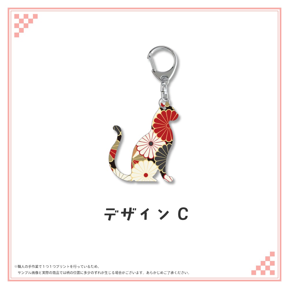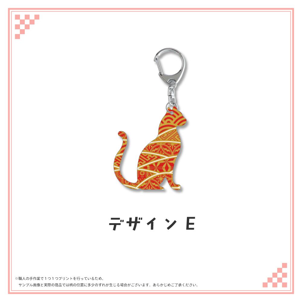 和柄シルエット ステンレスキーホルダー ネコ④
