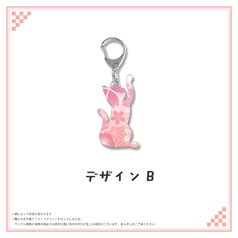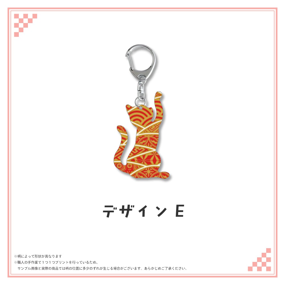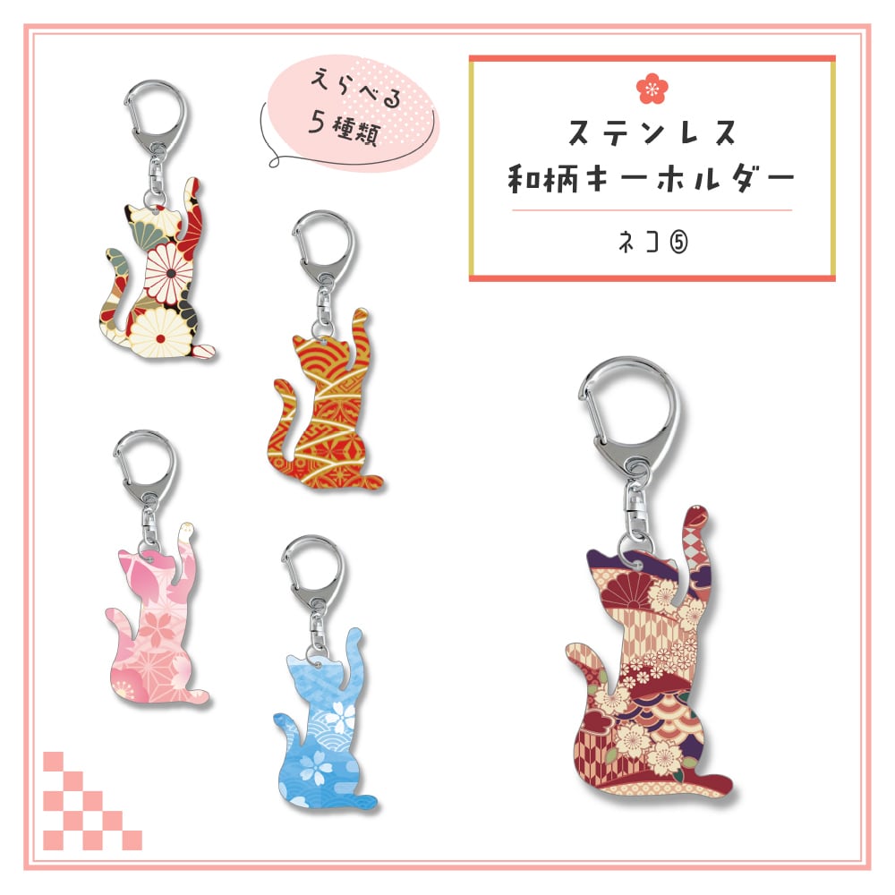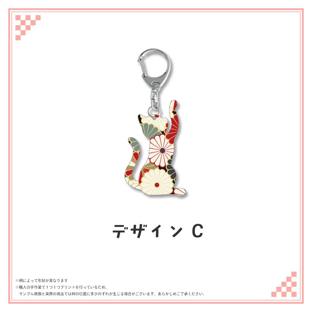 和柄シルエット ステンレスキーホルダー ネコ⑤
