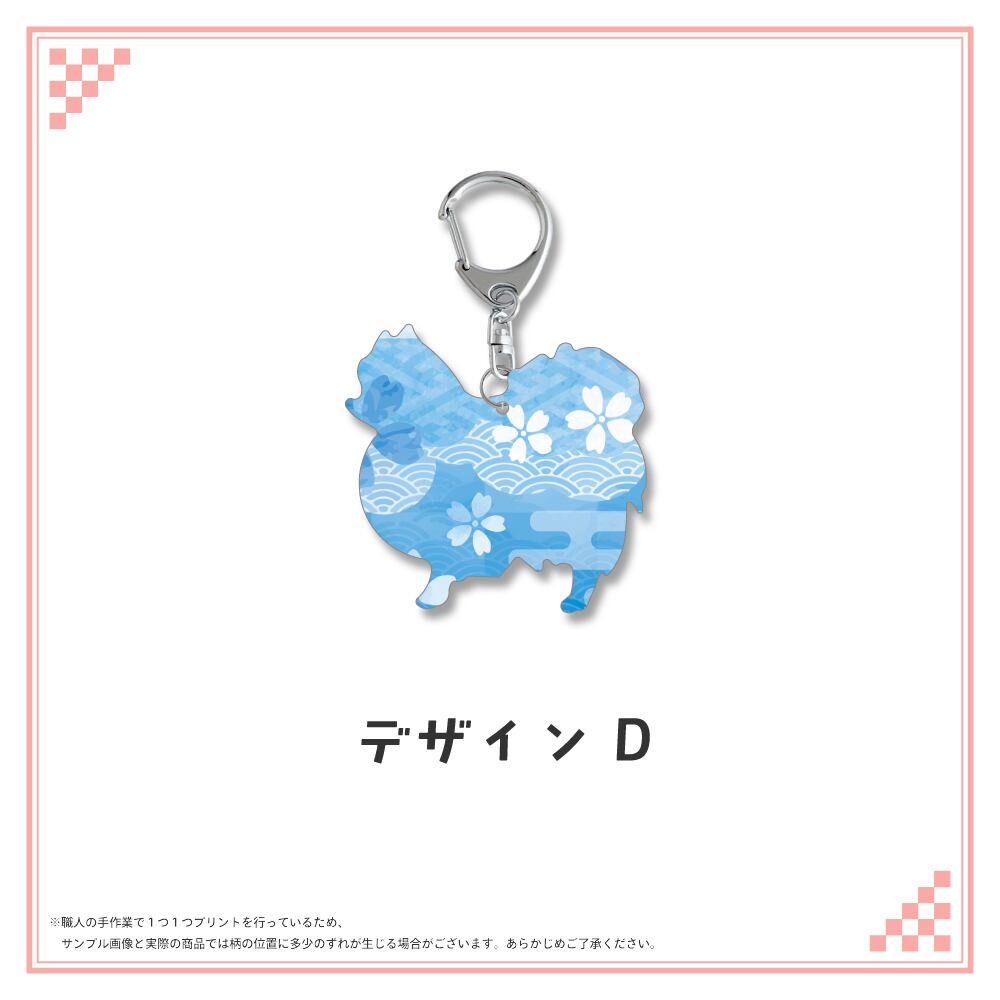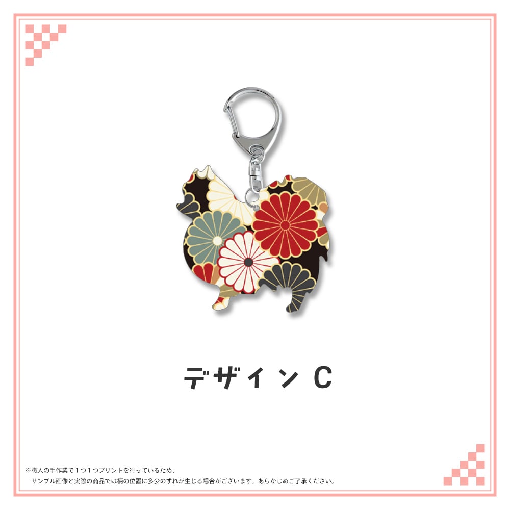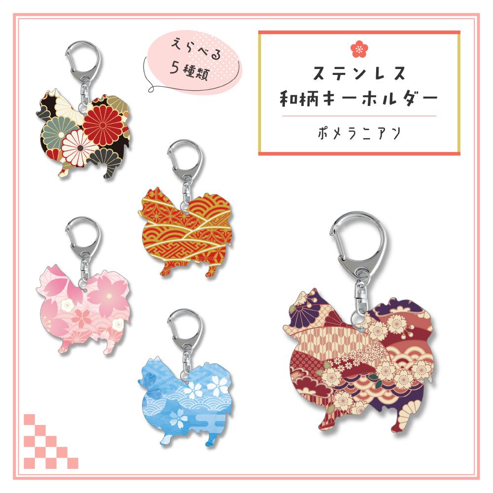 和柄シルエット ステンレスキーホルダー ポメラニアン