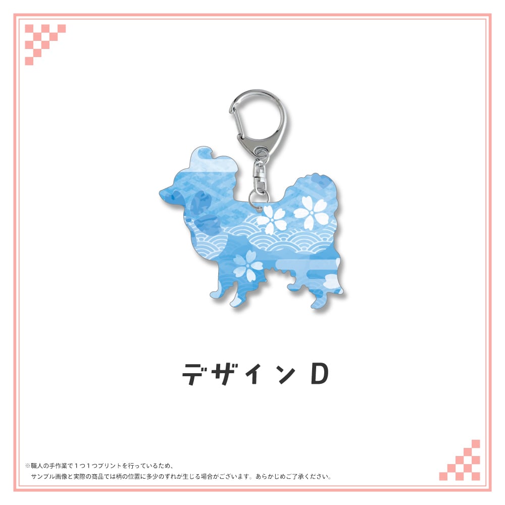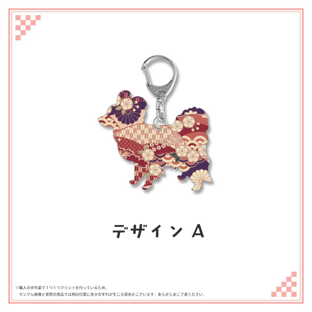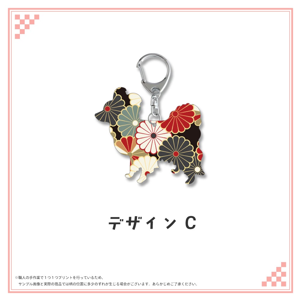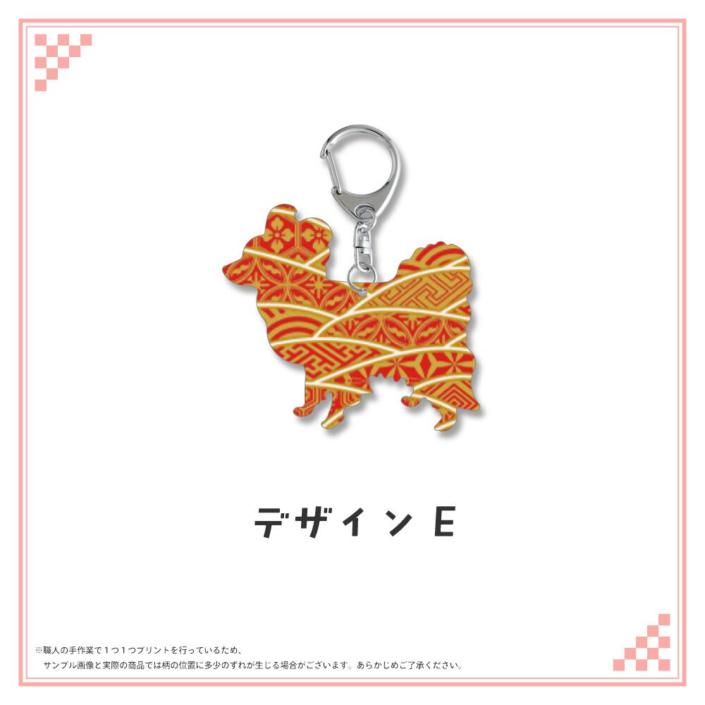 和柄シルエット ステンレスキーホルダー パピヨン