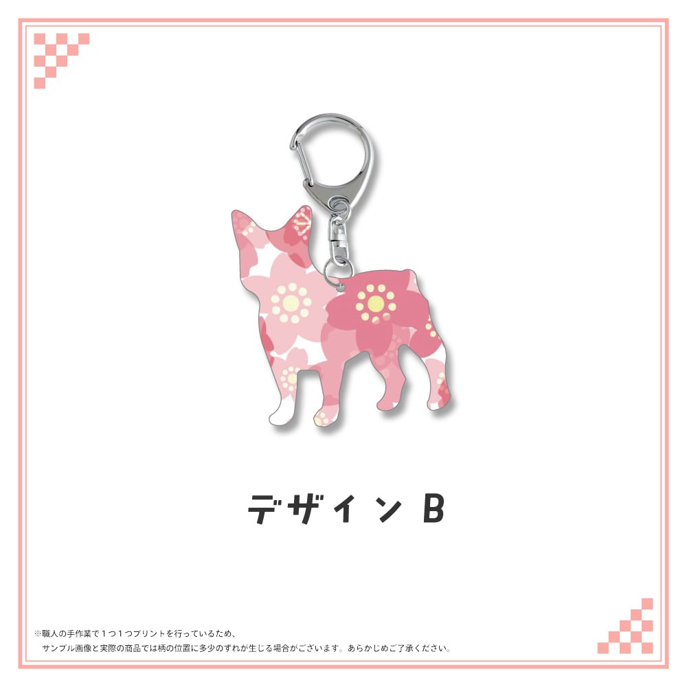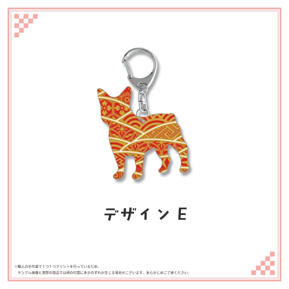 和柄シルエット ステンレスキーホルダー ブルドッグ