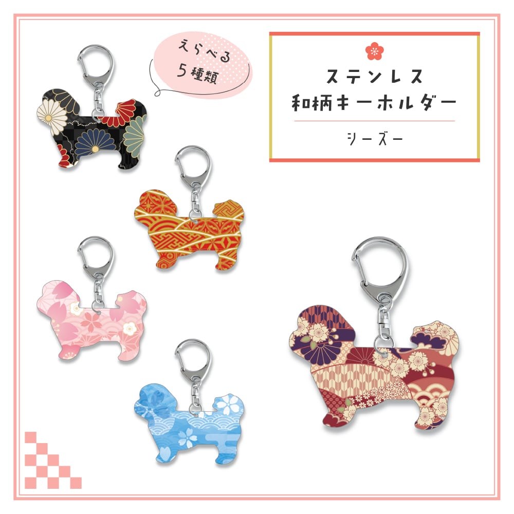 和柄シルエット ステンレスキーホルダー シーズー